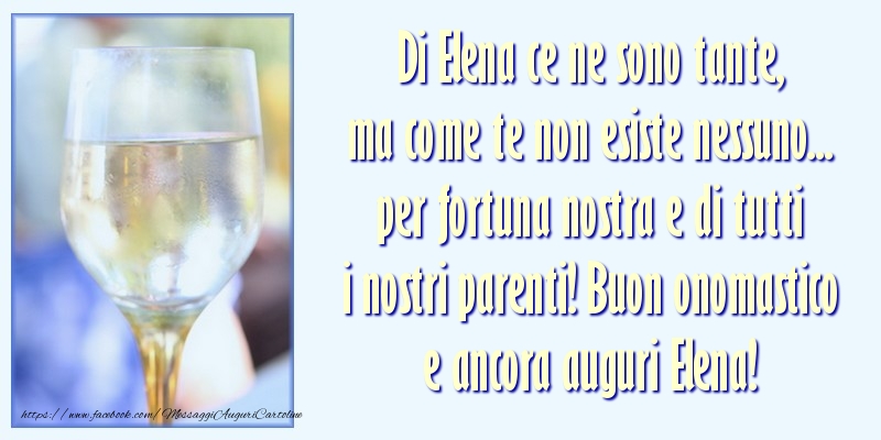 Di Elena ce ne sono tante, ma come te non esiste nessuno... per fortuna nostra e di tutti i nostri parenti! Buon onomastico e ancora auguri Elena!