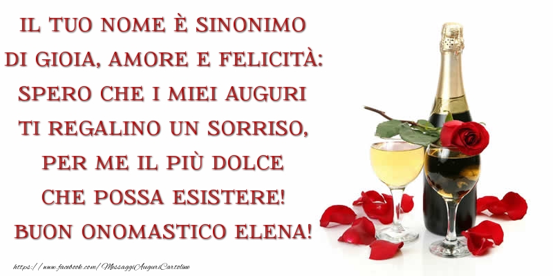 Il tuo nome è sinonimo di gioia, amore e felicità: spero che i miei auguri ti regalino un sorriso, per me il più dolce che possa esistere! Buon onomastico Elena!