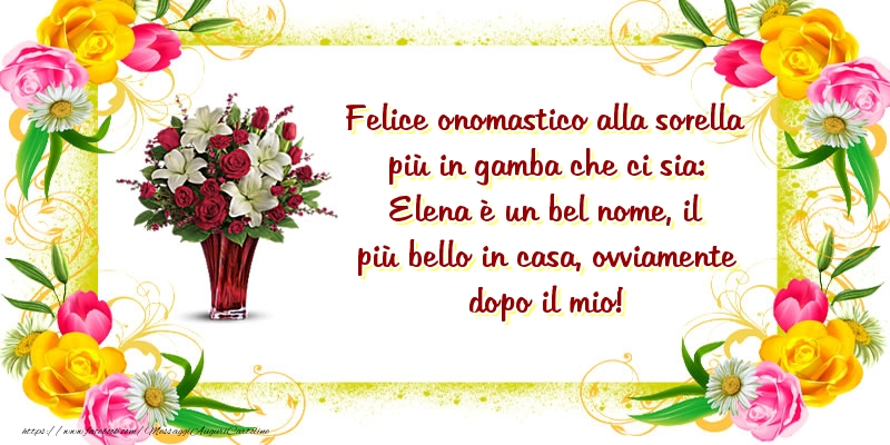 Felice onomastico alla sorella più in gamba che ci sia: Elena è un bel nome, il più bello in casa, ovviamente dopo il mio!