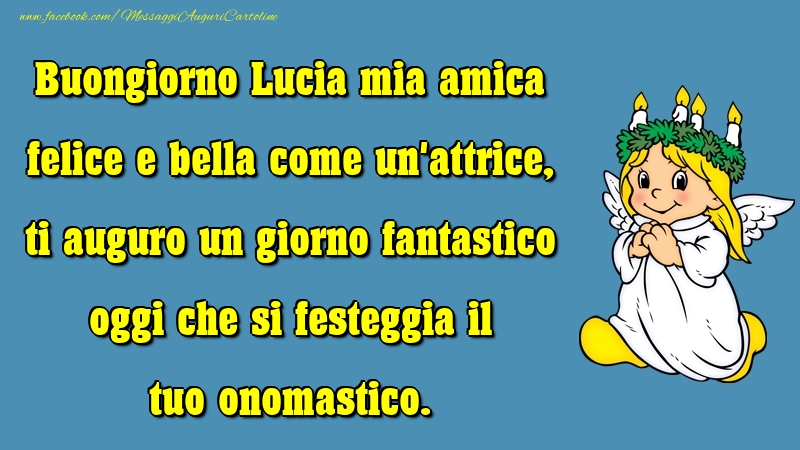 Buongiorno Lucia mia amica felice e bella come un'attrice, ti auguro un giorno fantastico oggi che si festeggia il tuo onomastico.