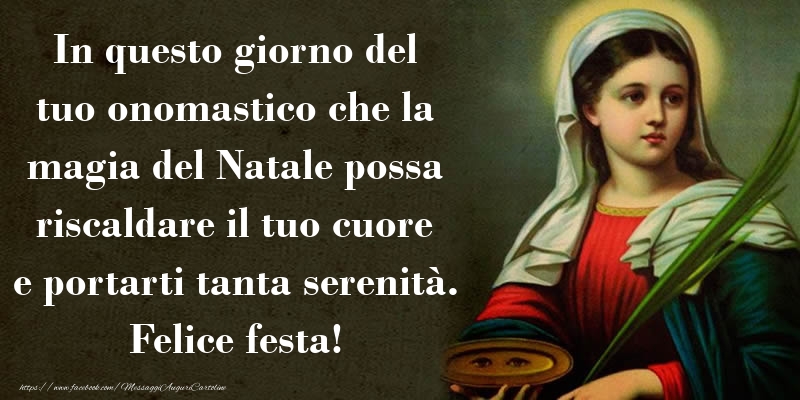In questo giorno del tuo onomastico che la magia del Natale possa riscaldare il tuo cuore e portarti tanta serenità. Felice festa!
