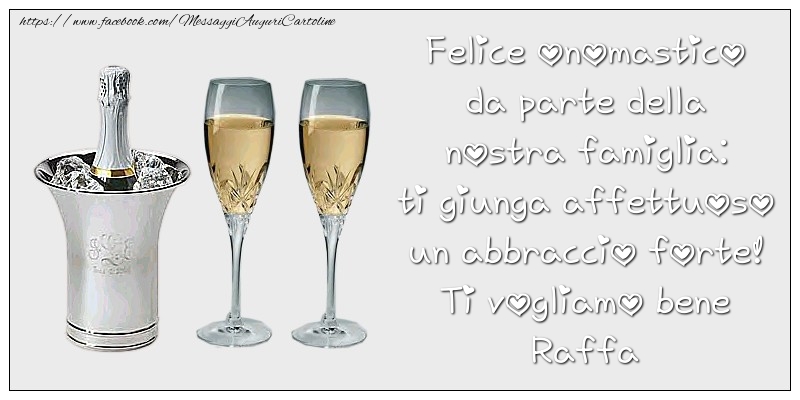 Felice onomastico da parte della nostra famiglia: ti giunga affettuoso un abbraccio forte! Ti vogliamo bene Raffa