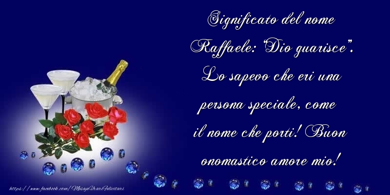 Significato del nome Raffaele: “Dio guarisce”. Lo sapevo che eri una persona speciale, come il nome che porti! Buon onomastico amore mio!