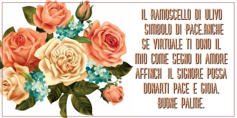 Il ramoscello di ulivo è simbolo di pace.Anche se virtuale ti dono il mio come segno di amore affinché il Signore possa donarti pace e gioia.Buone Palme.