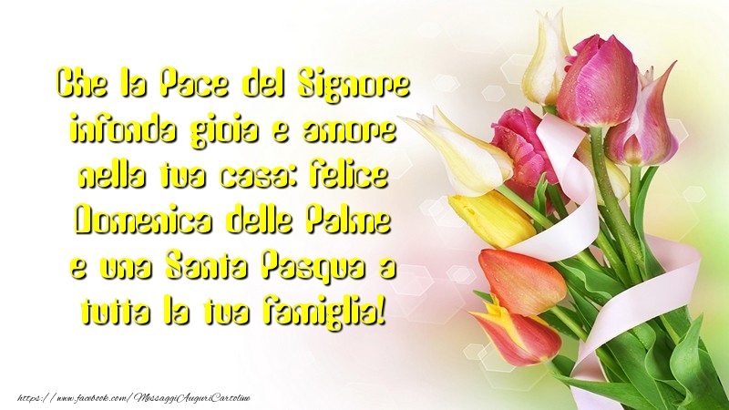 Che la Pace del Signore infonda gioia e amore nella tua casa: felice Domenica delle Palme e una Santa Pasqua a tutta la tua famiglia!