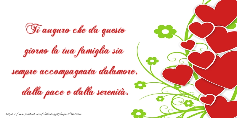Ti auguro che da questo giorno la tua famiglia sia sempre accompagnata dal'amore, dalla pace e dalla serenità.