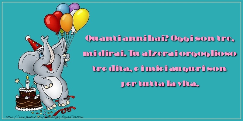 Quanti anni hai? Oggi son tre, mi dirai. Tu alzerai orgoglioso tre dita, e i miei auguri son per tutta la vita.