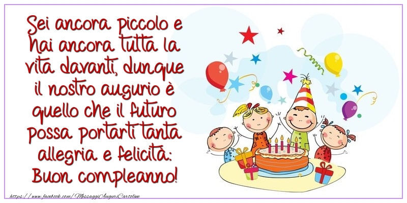Sei ancora piccolo e hai ancora tutta la vita davanti, dunque il nostro augurio è quello che il futuro possa portarti tanta allegria e felicità: Buon compleanno!
