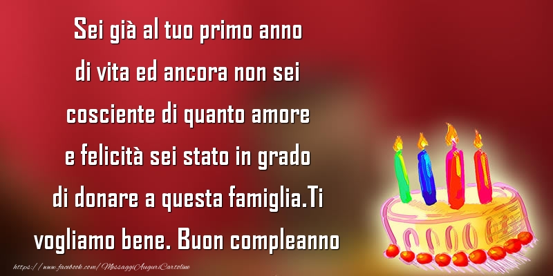 Sei già al tuo primo anno di vita ed ancora non sei cosciente di quanto amore e felicità sei stato in grado di donare a questa famiglia.Ti vogliamo bene. Buon compleanno