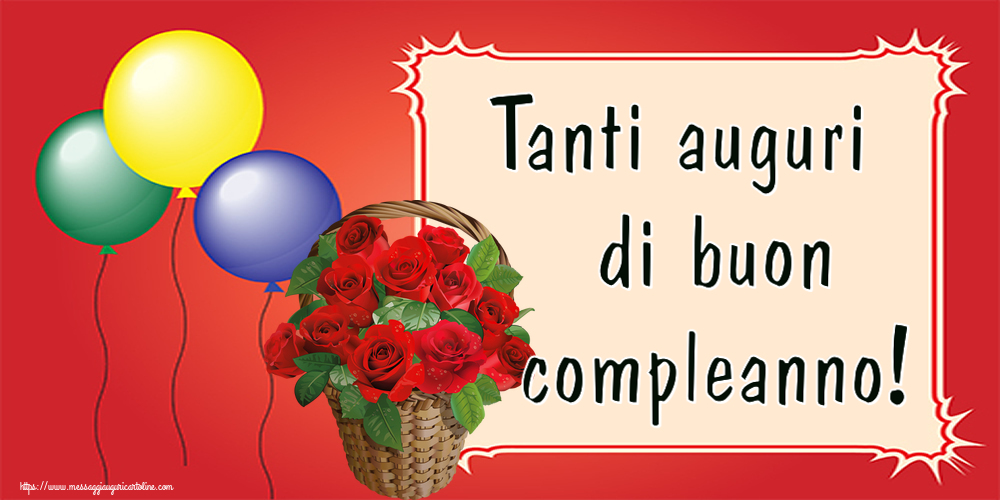 Cartoline di auguri - Tanti auguri di buon compleanno! ~ rose rosse nel cesto - messaggiauguricartoline.com