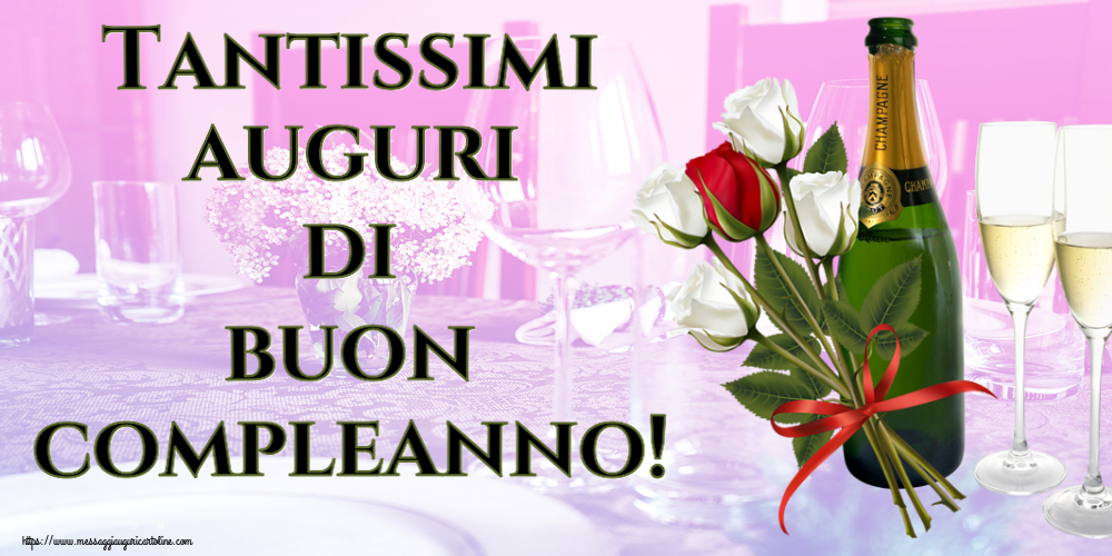 Cartoline di auguri - Tanti auguri di buon compleanno! ~ belle rose e champagne - messaggiauguricartoline.com