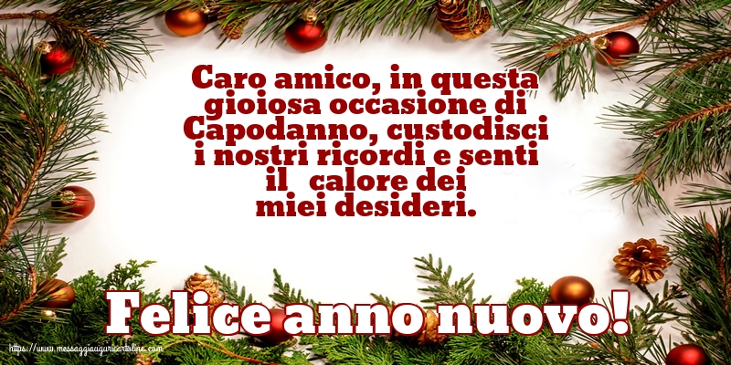 Caro amico, in questa gioiosa occasione di Capodanno, custodisci i nostri ricordi e senti il calore dei miei desideri.