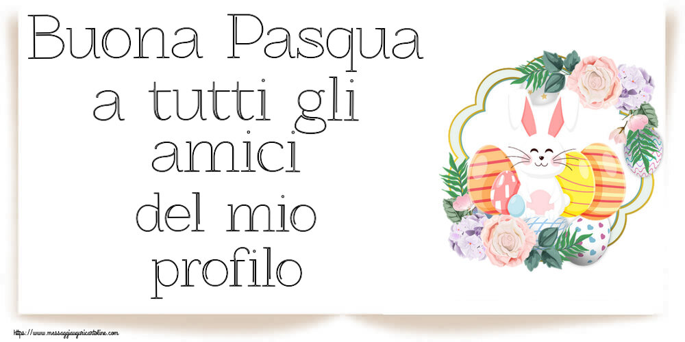 Cartoline di Pasqua - Buona Pasqua a tutti voi! ~ composizione con coniglietto e uova - messaggiauguricartoline.com