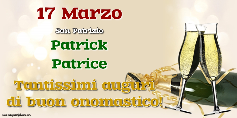 17 Marzo San Patrizio Tantissimi auguri di buon onomastico Patrizio e Patrizia!