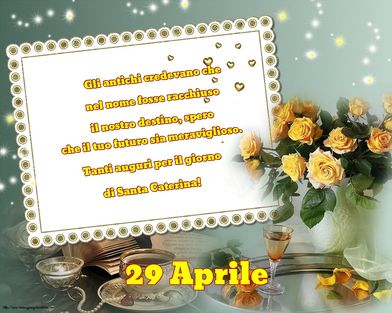 Tantissimi auguri di buon onomastico Caterina! 29 Aprile Santa Caterina Tantissimi auguri di buon onomastico Caterino! 29 Aprile Santa Caterina 29 Aprile - Santa Caterina Gli auguri più sinceri ed affettuosi per il tuo onomastico! Ti voglio bene. 29 Aprile Santa Caterina Tantissimi auguri di buon onomastico Catterina e Catterino! 29 Aprile Santa Caterina Tantissimi auguri di buon onomastico Caterina e Caterino! 29 Aprile Santa Caterina Tantissimi Auguri di Buon Onomastico!