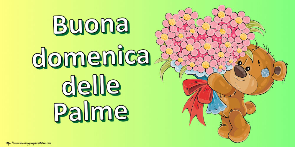 Cartoline Domenica delle Palme - Buona domenica delle Palme ~ Teddy con un mazzo di fiori - messaggiauguricartoline.com